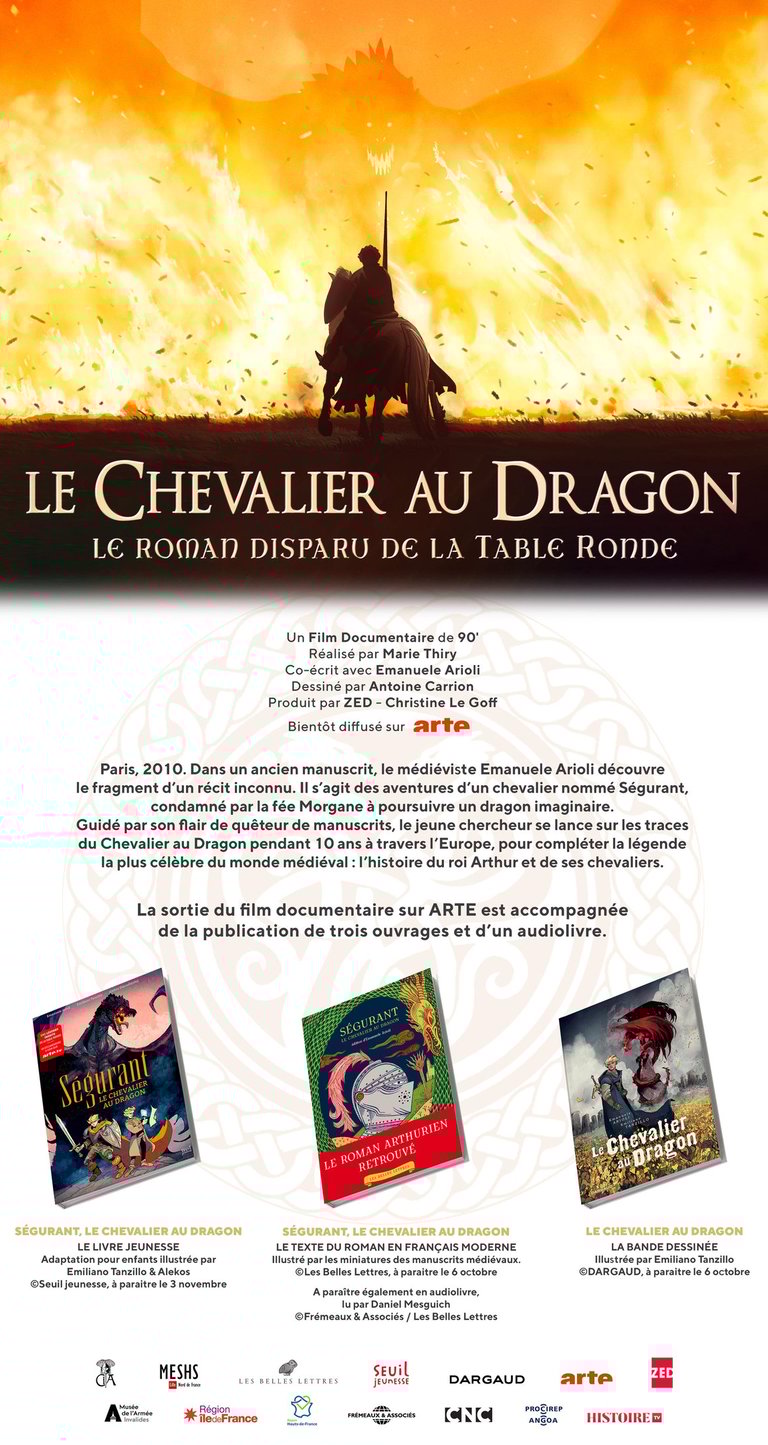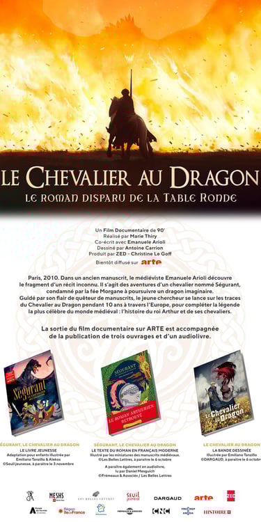 14. Le Chevalier au Dragon : le roman disparu de la Table Ronde, documentaire ARTE de 90 minutes pour « l’Aventure humaine ». Chercheur protagoniste et co-auteur (avec la réalisatrice Marie Thiry). ZED. Diffusion sur ARTE.